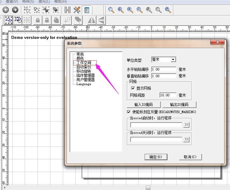 2.我们点击进入这个页面后,找到激光打标机工作空间,如下图: