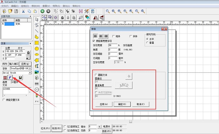 我们点击斜着的F后,就会出现一个显示框,注意我上图选中的红色区域,将圆弧文本那里勾选上。