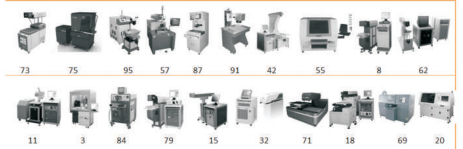 代表性样本选取结果见图,样本涵盖国内外主 流品牌激光打标机。为了减少个人主观经验的判断, 确保样本选取的客观性,让受测者分别从激光打标机 3个维度(“简洁—复杂”、“硬朗—柔和”、“高明度—低 明度”)对100个样本打分,然后对打分结果进行多元 尺度分析和聚类分析,最后选取代表性样本20张。