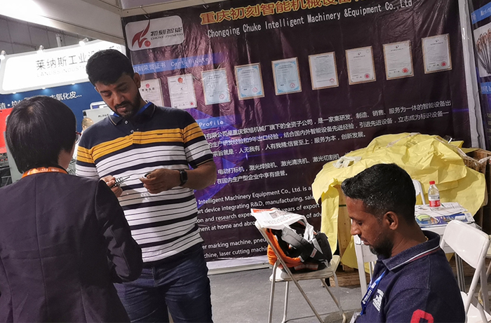 除了受到官方采访,国外客户也是对我们的打标机设备比较满意,一直在现场看我们的设备