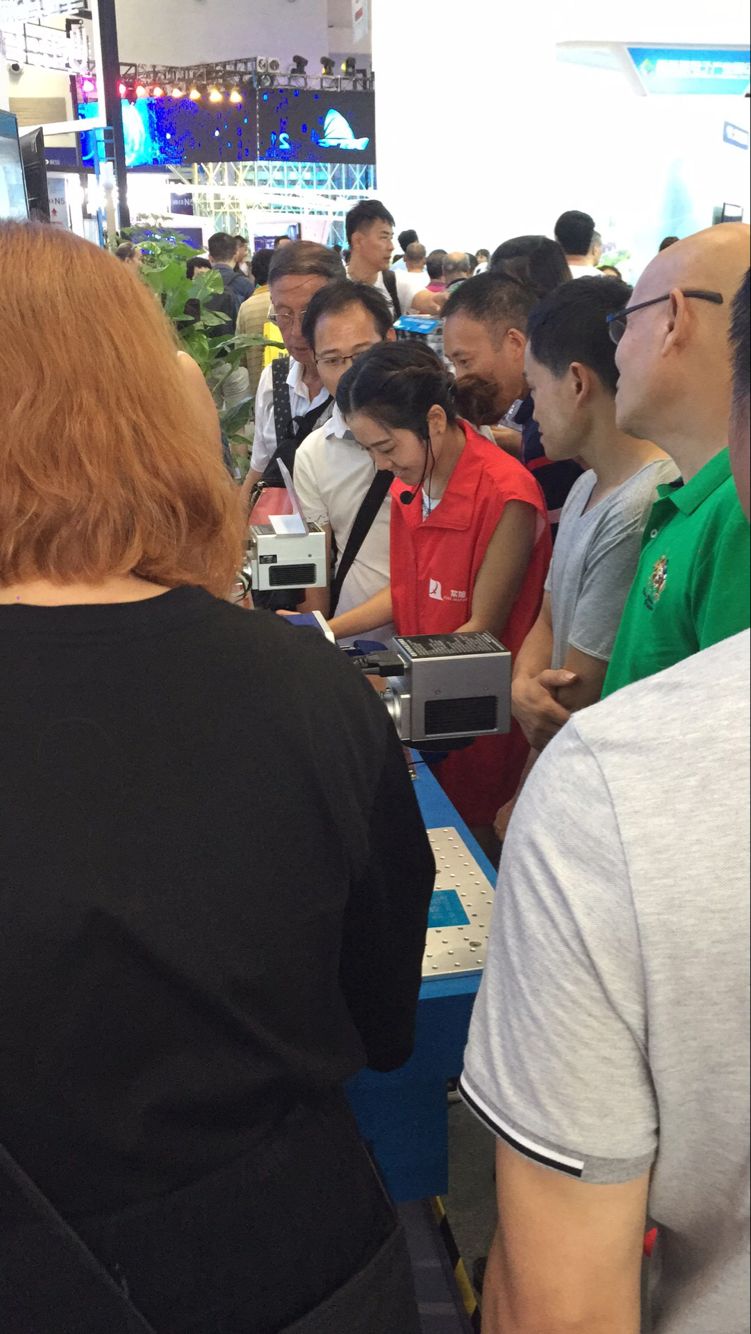 重庆初刻打标机工厂现场展示的设备有自动化激光打标机,自动化气动打标机设备等设备,现场围观的客户非常的多,另外还现场进行免费手机壳刻字等服务。