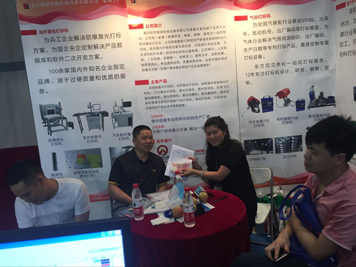 2017年5月,重庆初刻激光打标机公司应邀参加立嘉国际机械博览会,该次展会在重庆国际博览中心举办,在为期三天展览中,重庆初刻智能机械设备有限公司现场签约不断,此次展会重庆初刻公司展示的产品有:光纤激光打标机,CO2激光打标机,气动打标机,便携式气动打标机,手持打标机,双手提气动打标机,打标机配件打标针头等打标系列产品。